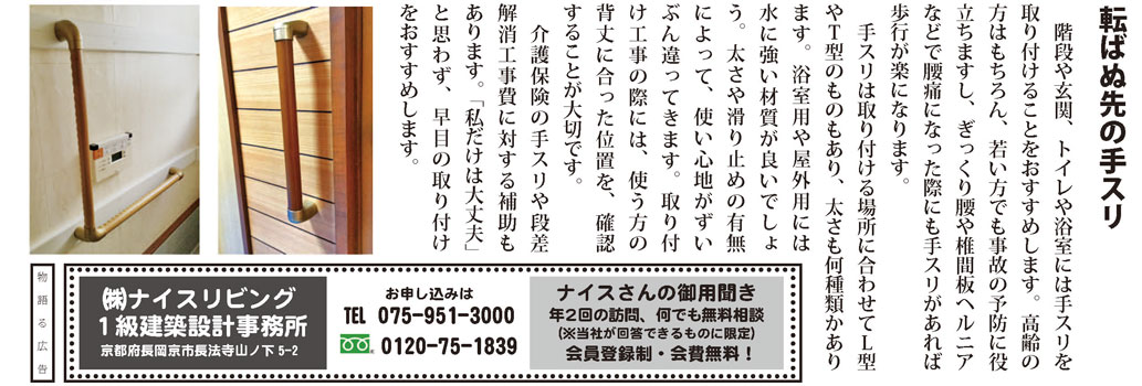 介護保険の手スリや段差解消工事費に対する補助もあります。「私だけは大丈夫」