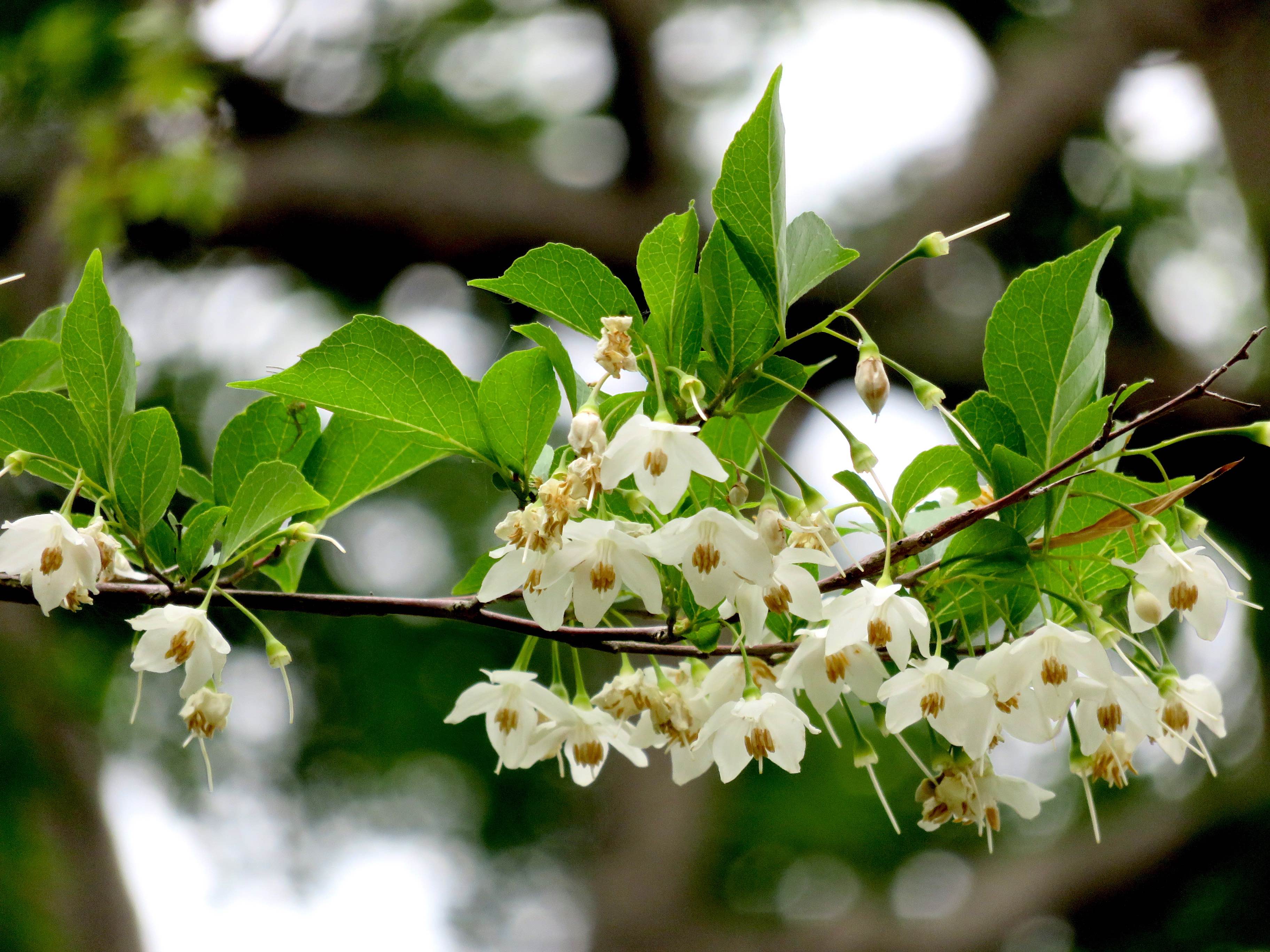 エゴノキを身近に見られるところは、聖天さんの上の方にある登山道に面した出入り口のそば、小倉神社の奥の久保川沿いなど。