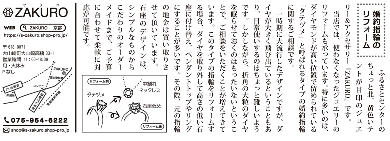 ふるさとセンターのちょっと北、黄色いテントが目印のジュエリー&アクセサリー『ZAKURO』です。