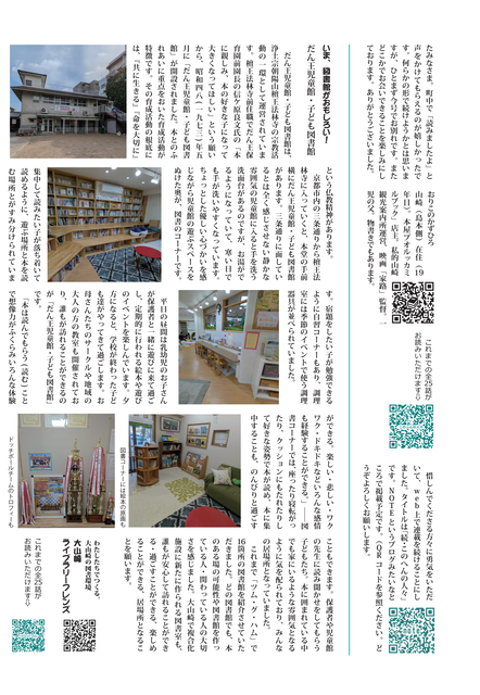 16箇所の図書館を紹介させていただきました。どの図書館でも、本のある場の可能性や図書館を作っている人・関わっている人の大切さを感じました。大山崎で複合化施設に新たに作られる図書室も、誰もが安心して訪れることができる・過ごすことができる、楽しめることができる、居場所となることを願います。